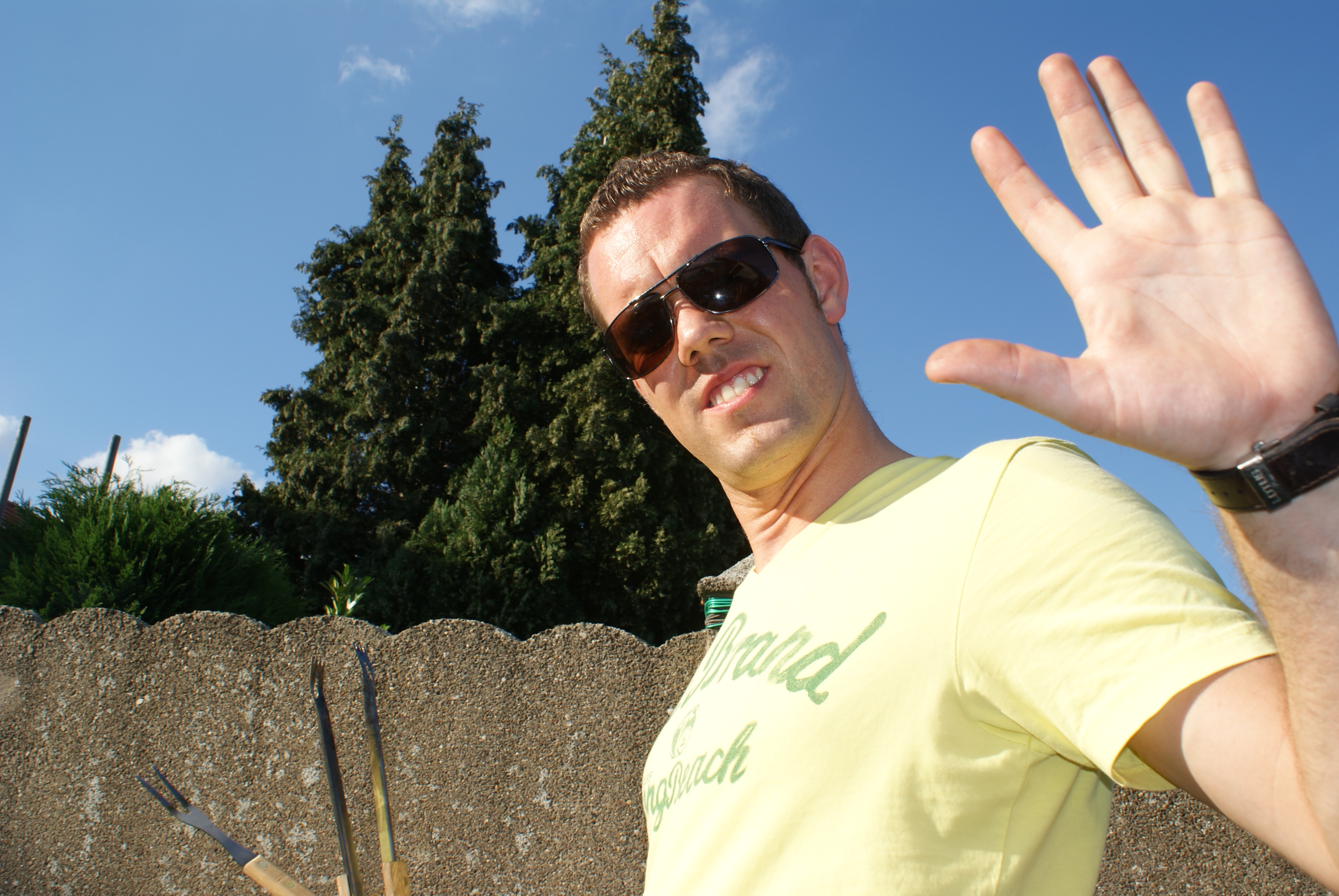 Op de eerste twee foto's doet hij zot zoals hij is.